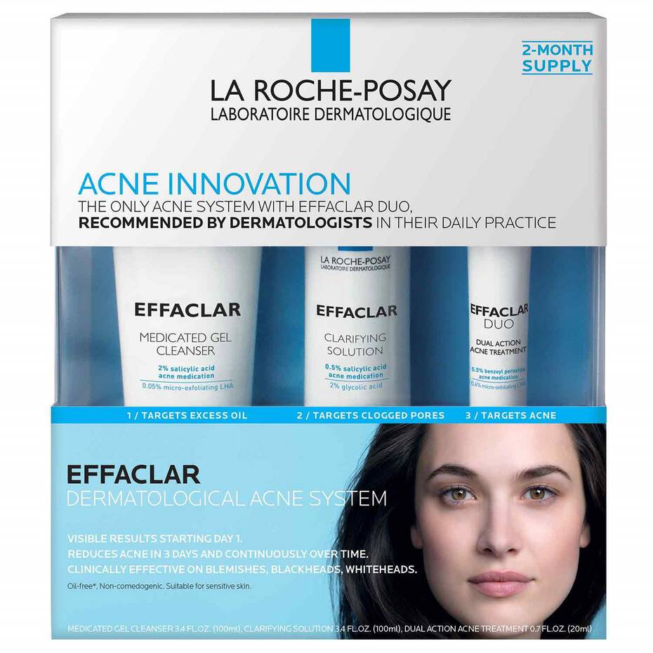 El único kit para el acné con Effaclar Duo, recomendado por dermatólogos, para reducir hasta el 60% del acné en sólo 10 días con resultados visibles desde el primer día. Formulado con ingredientes dermatológicos para el tratamiento del acné para reducir los puntos negros, los puntos blancos y los granos. Apto para pieles sensibles. Ganador en tres ocasiones del premio "Best of Beauty" de Allure al mejor tratamiento para el acné.