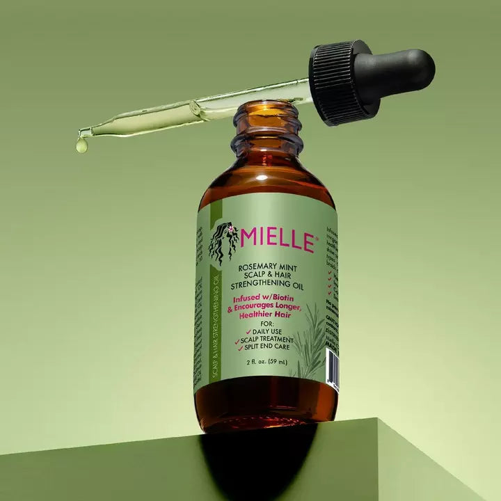 Fomente un cabello más fuerte y saludable con el aceite orgánico fortalecedor del cabello y el cuero cabelludo de menta y romero de Mielle Organic.
